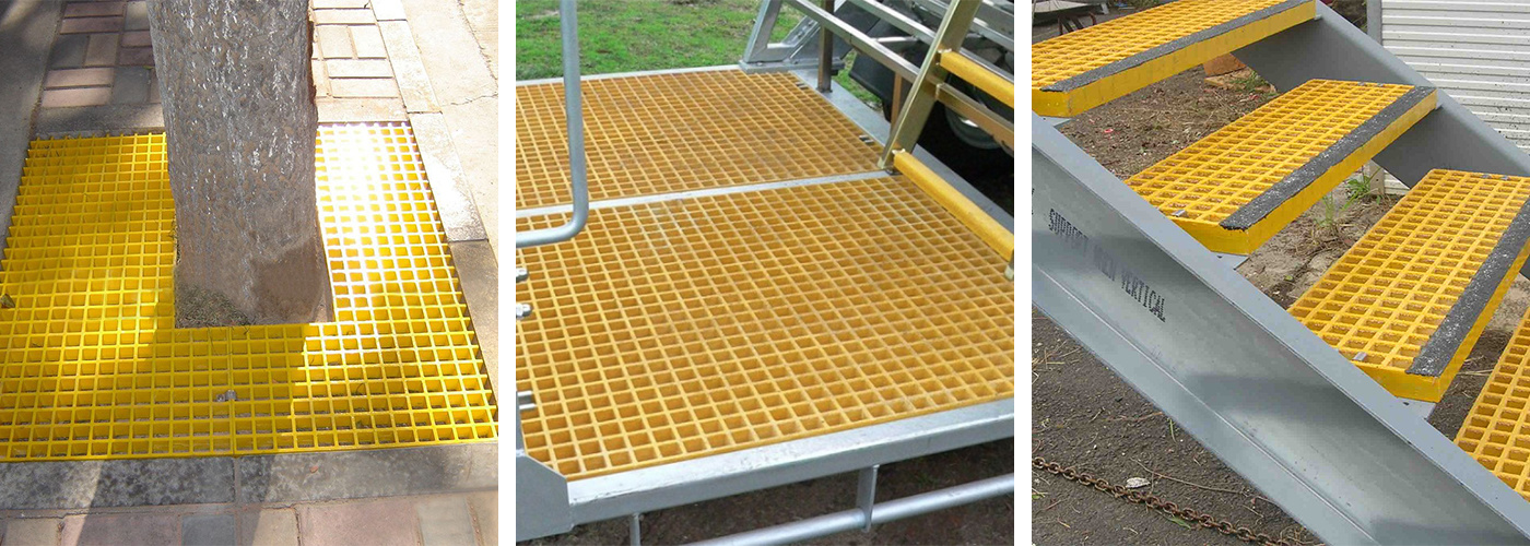 Glass fiber reinforced plastic (FRP) grating, also known as FRP grating, is a plate-shaped material with many spaces that is made of glass fiber as a reinforcing material and unsaturated polyester resin as a matrix. It is compounded through special processing. Fiberglass grating can be used as structural materials for floors, trench covers, platforms, ship decks, stairs, planks, etc. in corrosive environments. It has the characteristics of corrosion resistance and flame retardancy, non-magnetic insulation, bright colors, and a variety of styles to choose from.